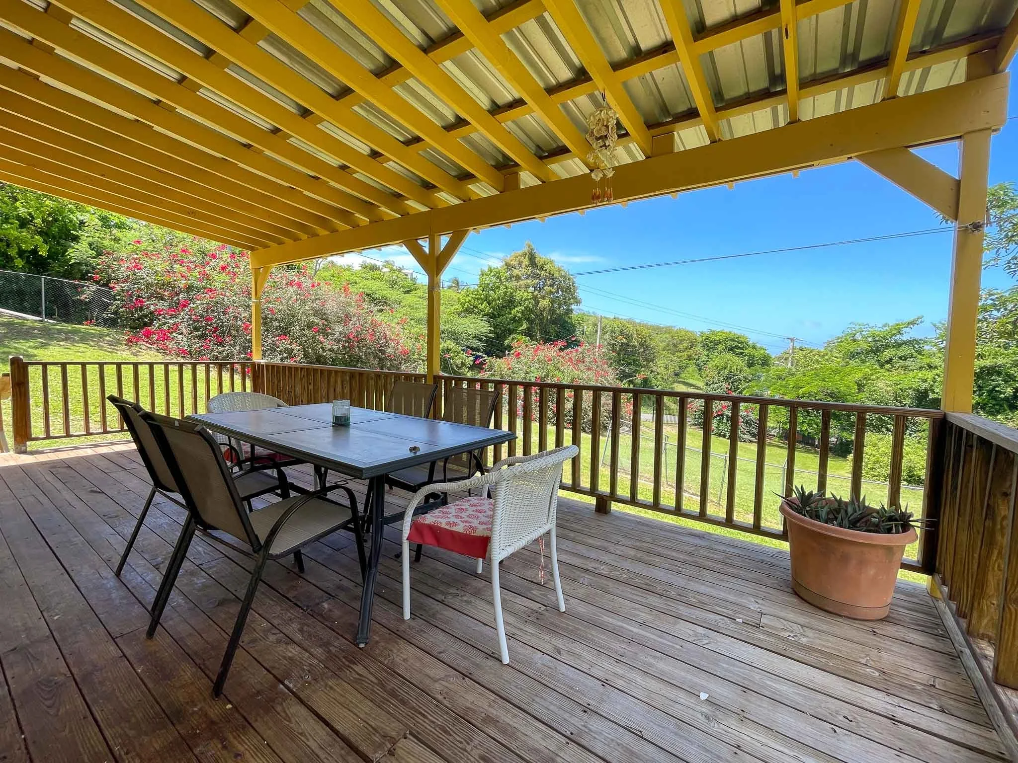 Casa Alyssa is situated on a charming corner lot in the Villa Borinquen neighborhood. Sitting on approximately 2/3 of an acre of fully fenced-in land, this property offers ocean views to the north and ample space for personalization, including the option for a pool. Mature fruit trees, such as an expansive avocado tree, bananas, breadfruit, and vibrant bougainvillea, adorn the landscape, adding to the allure of Caribbean life.